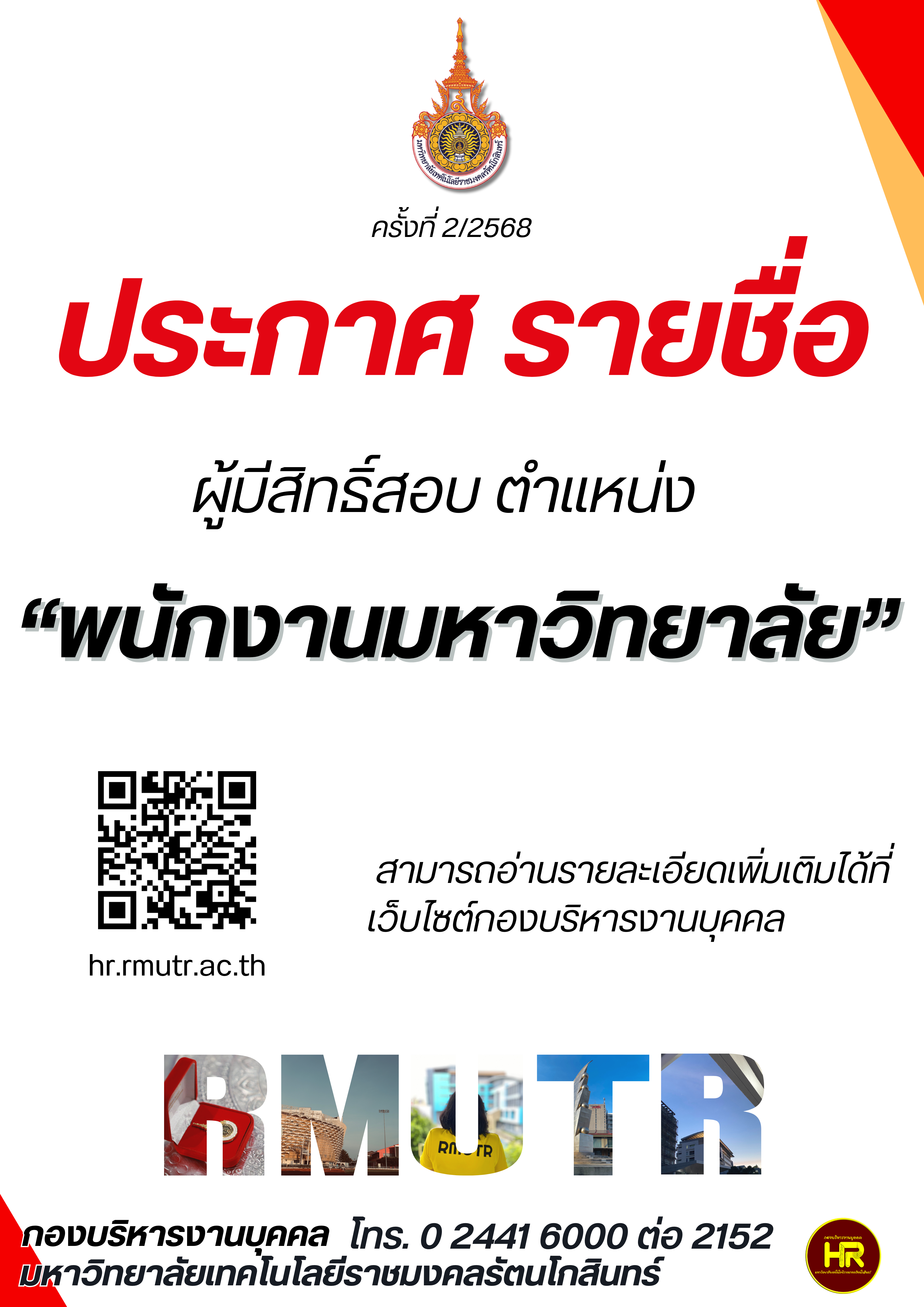 ประกาศรายชื่อผู้ผ่านการคัดเลือกเพื่อจ้างเป็นพนักงานมหาวิทยาลัย ตำแหน่งอาจารย์ ครั้งที่ 3/2568