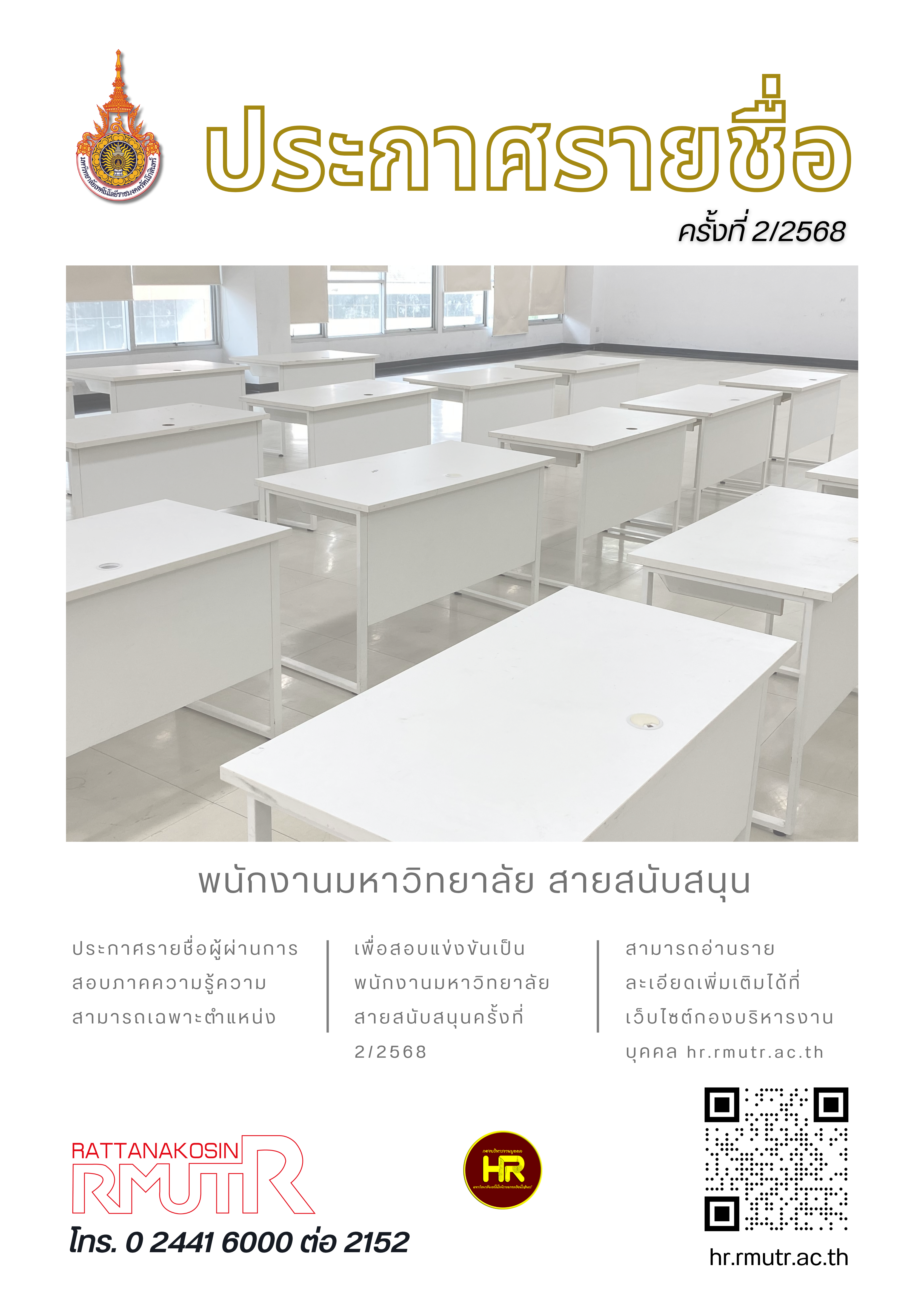 ประกาศรายชื่อผู้มีสิทธิเข้ารับการคัดเลือก และกำหนดวัน เวลา สถานที่ในการคัดเลือก เพื่อจัดจ้างเป็นพนักงานมหาวิทยาลัย ตำแหน่งอาจารย์ ครั้งที่ 4/2568